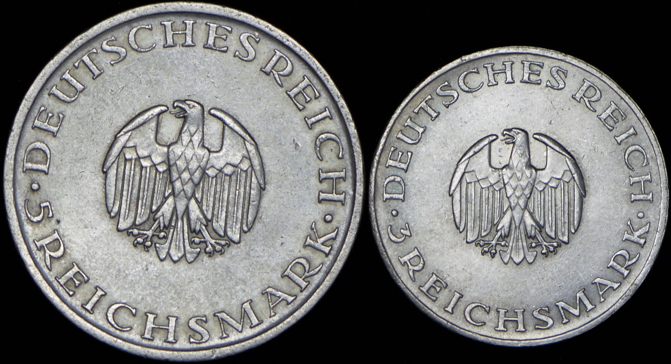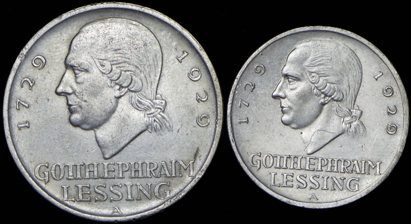 Набор из 2-х сер. монет 1929 "Лессинг" (Германия)