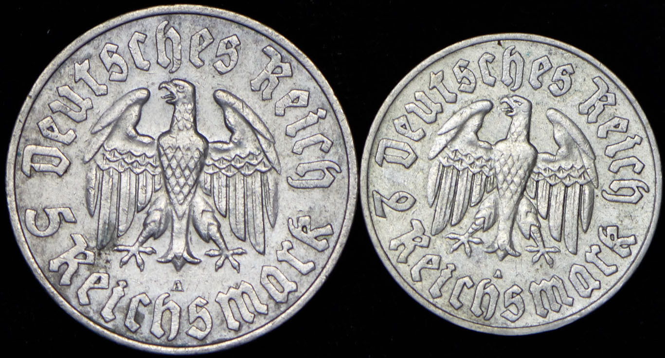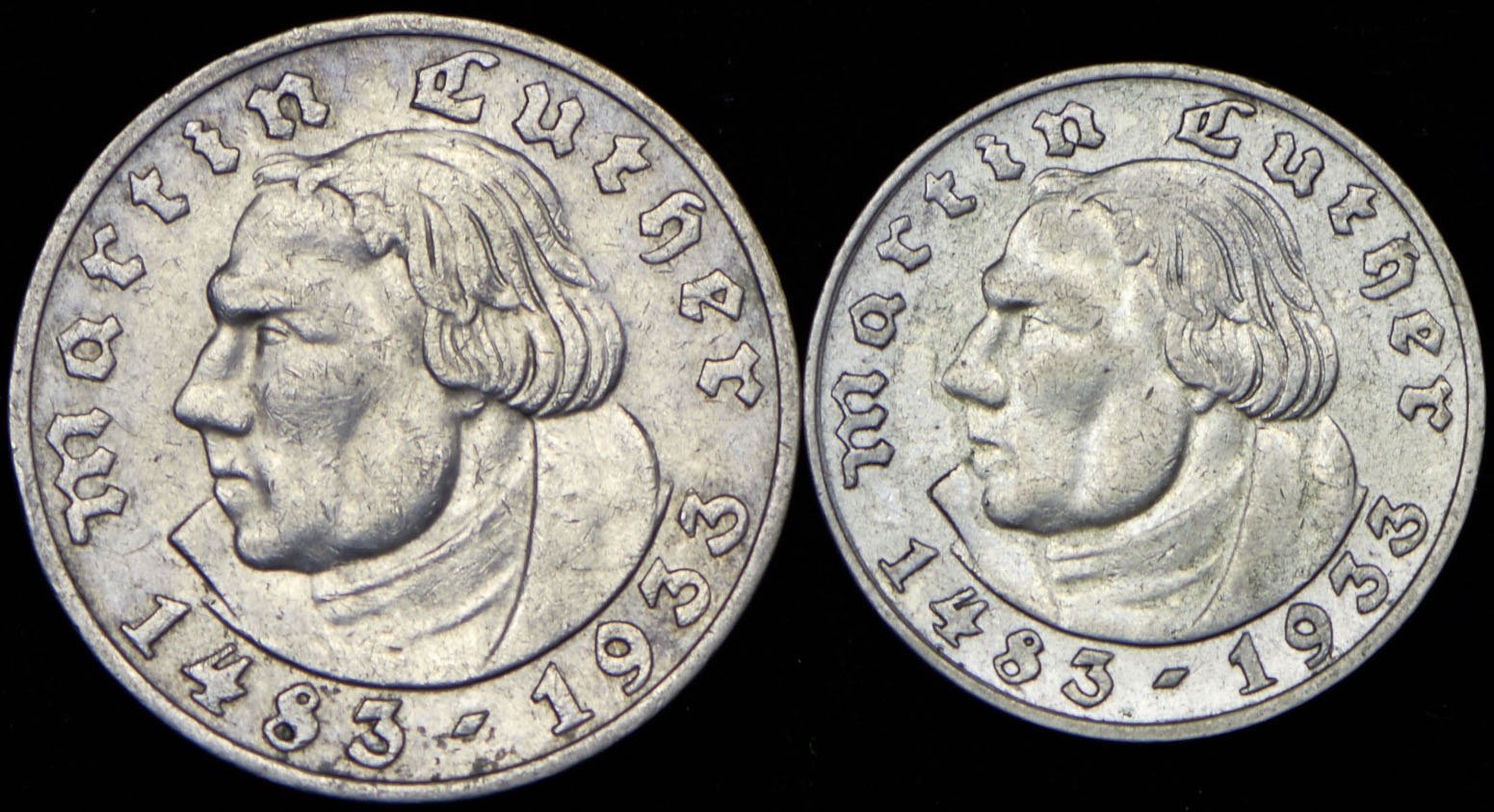 Набор из 2-х сер. монет 1933 "450 лет со дня рождения Мартина Лютера" (Германия)