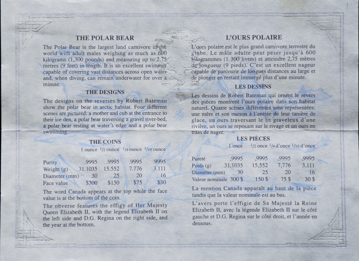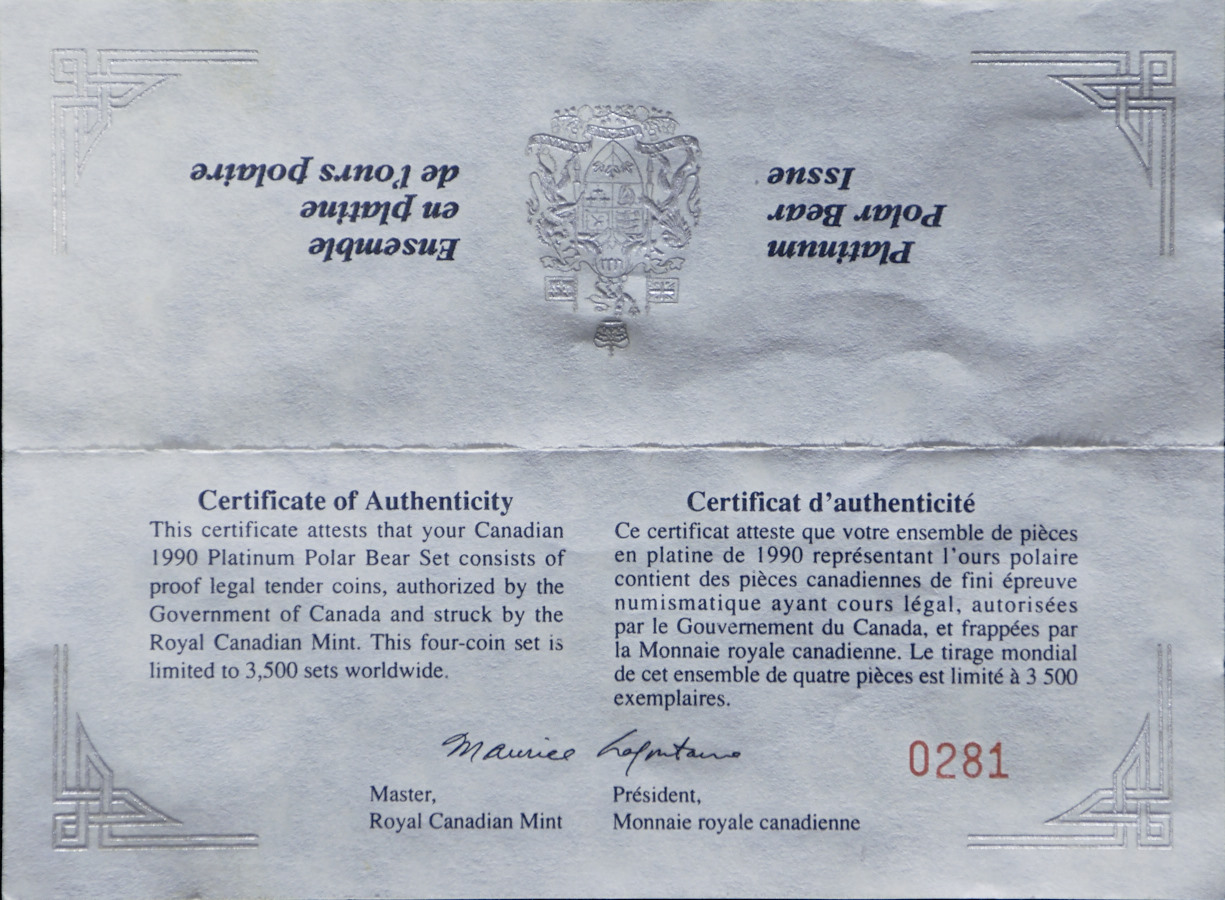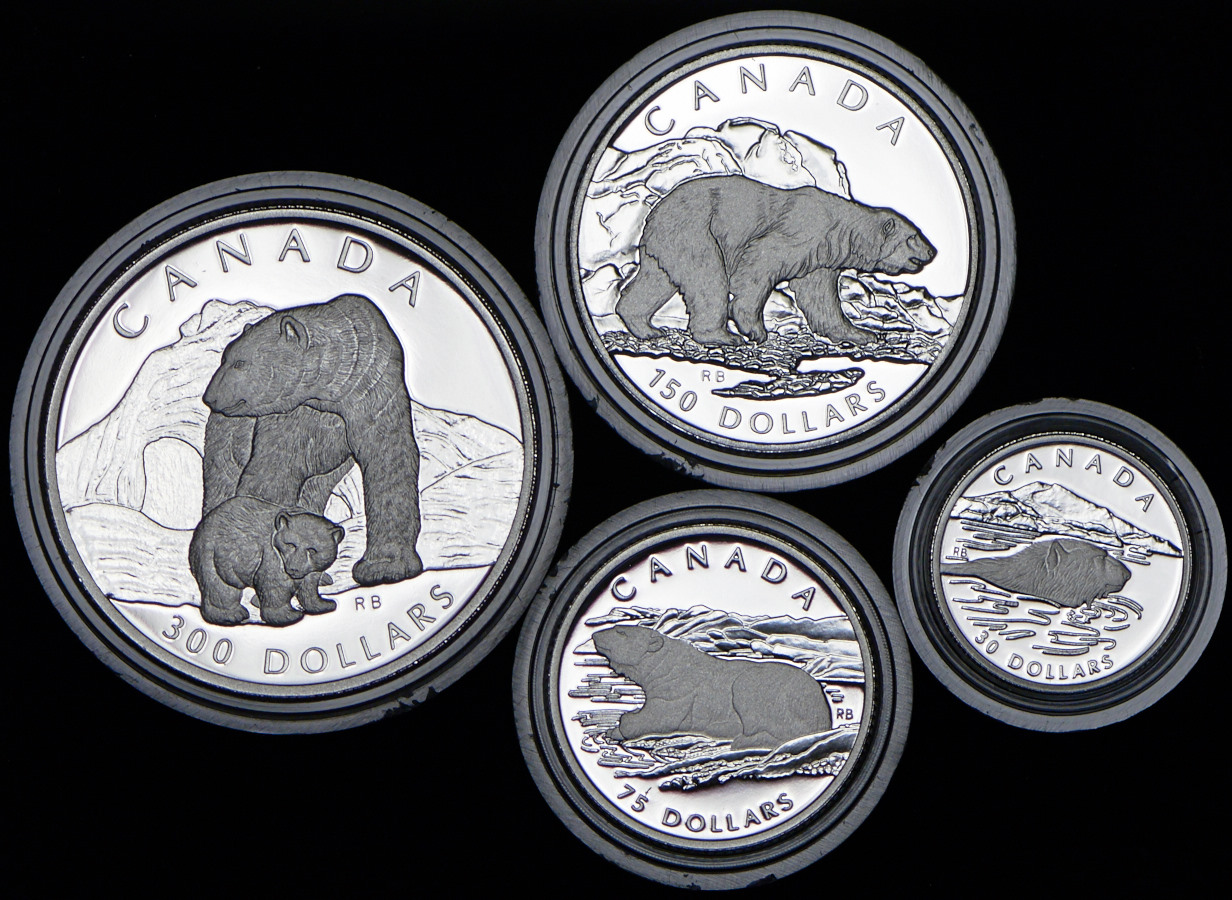 Набор из 4-х платиновых монет 1990 "Белый медведь" (Канада)