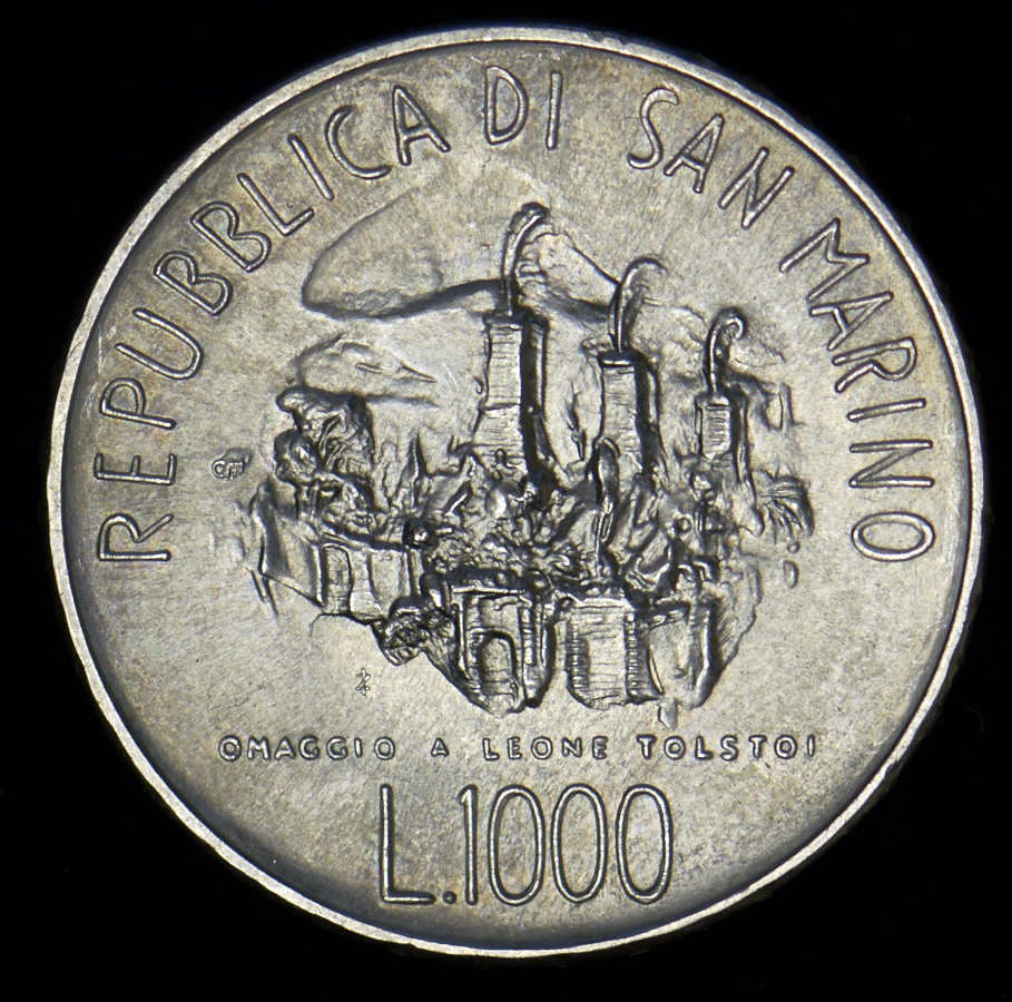 1000 лир 1978 "150 лет со дня рождения Льва Николаевича Толстого" (Сан-Марино)