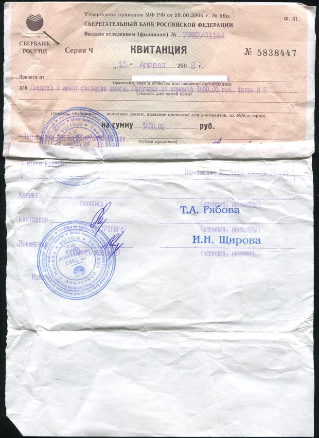 Прилагается квитанция о покупке данных монет в апреле 2008 года в Сбербанке.