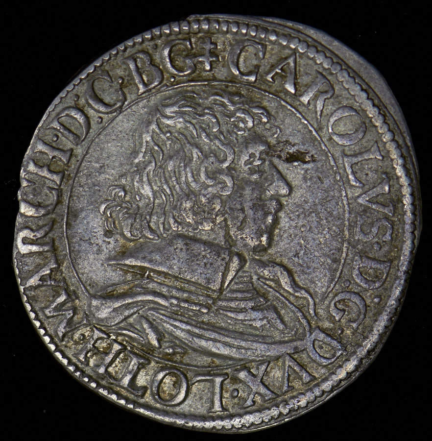 Легенда аверса "CAROLVS·D:G·DVX·LOTH·MARCH·D:C·B·G".