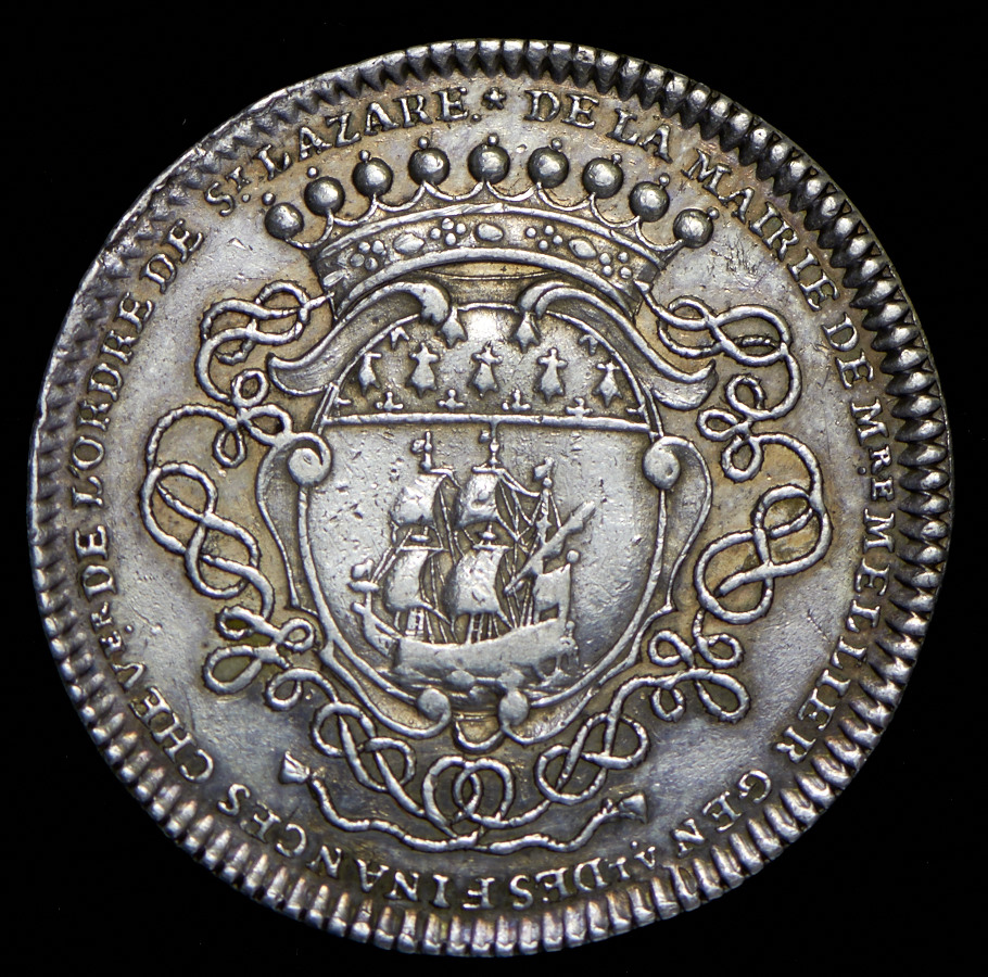 Легенда реверса " DE LA MAIRIE DE MRE. MELLIER GENAL. DES FINANCES CHEVER. DE L’ORDRE DE ST. LAZARE".