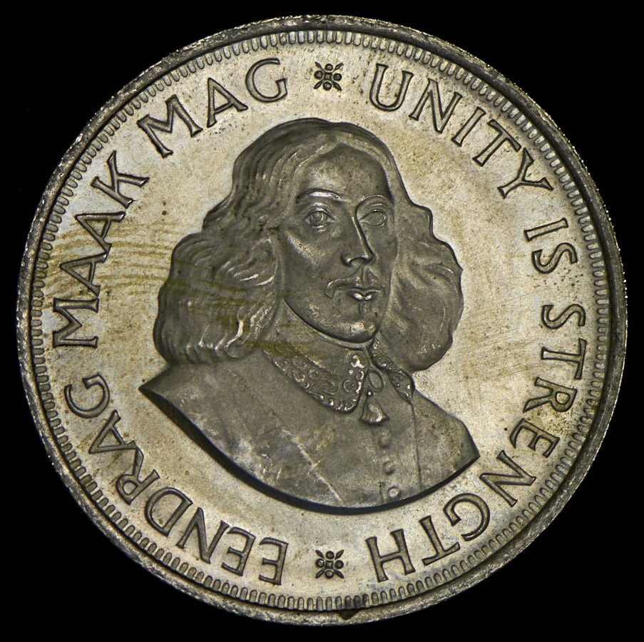 На аверсе размещен портрет Ян ван Рибека (Johan Anthoniszoon «Jan» van Riebeeck). Рибек считается отцом-основателем Южноафриканского мыса. Отвечая за создание Кейптауна в Южной Африке, он начал свою карьеру в качестве голландского колониального завоевателя, который стоял у истоков создания Голландской Ост-Индской компании. Рибек занимал многочисленные торговые посты по всему миру, включая Тонкин, Индокитай, Японию и Батавию, но именно создание в Южной Африке города для белых поселенцев сделало его известным.