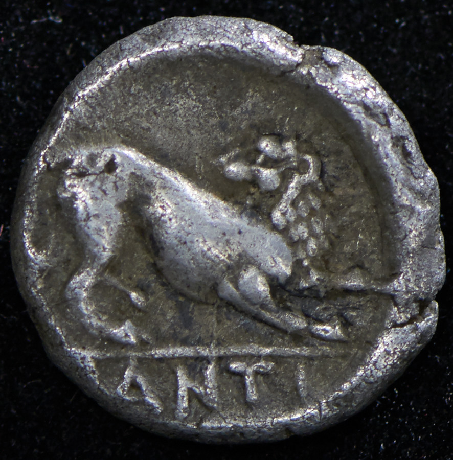 На реверсе изображен лев вправо, голова обращена назад, под ним "ПАNTI".