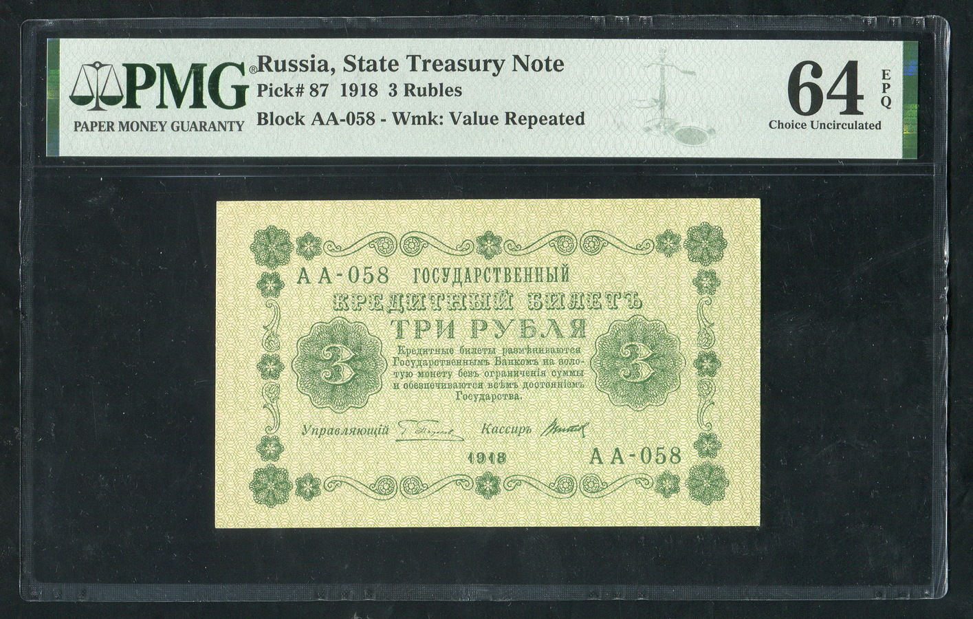 Государственный кредитный билет 3 рубля 1918 года, АА-058.