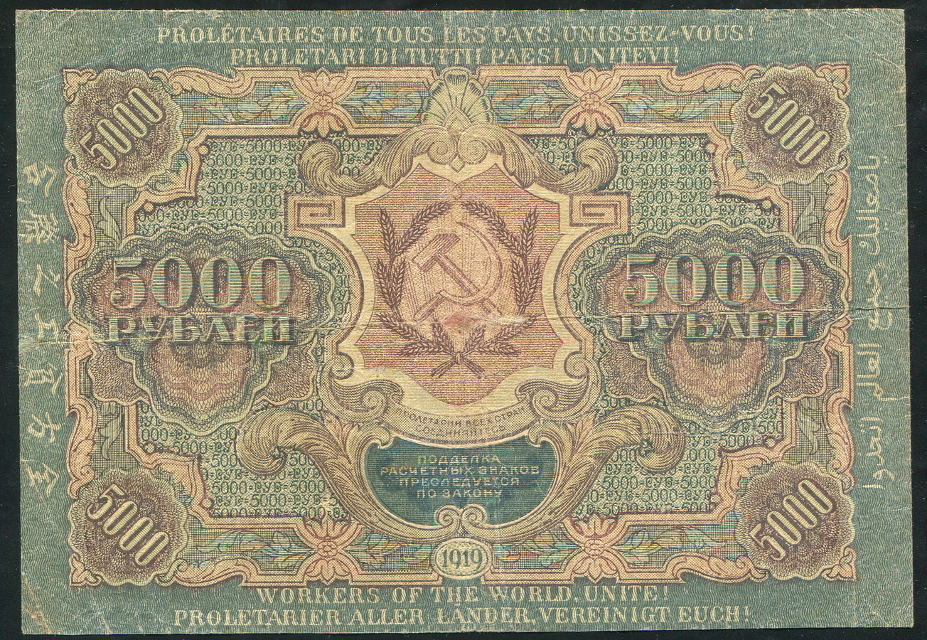 Расчетный знак РСФСР 5000 рублей образца 1919 года, ГБ 081237.