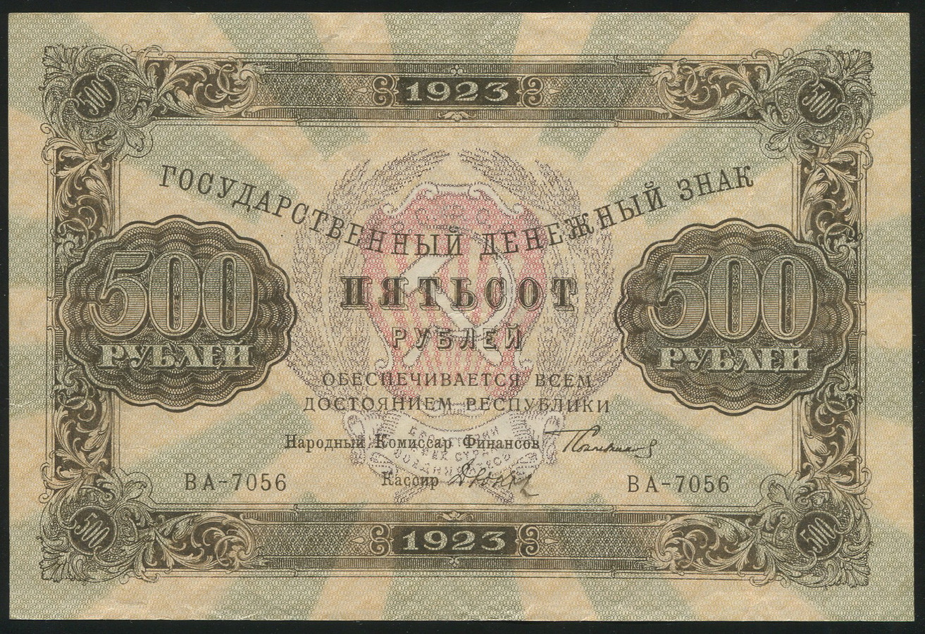 Государственный денежный знак РСФСР 500 рублей образца 1923 года, ЕА-7116.