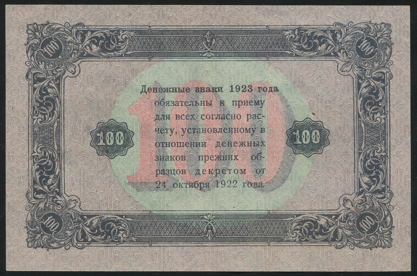 Государственный денежный знак РСФСР 100 рублей образца 1923 года, АЦ-5406.