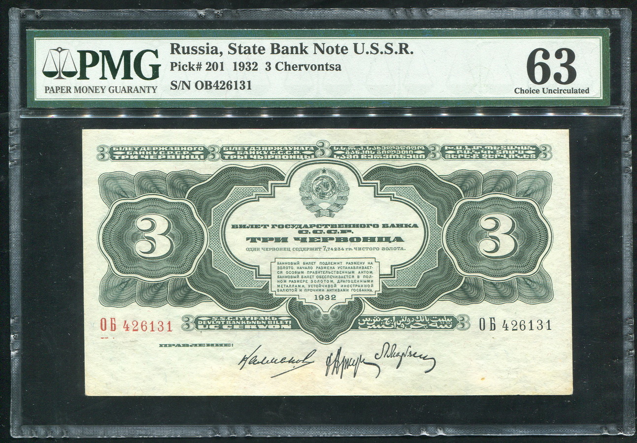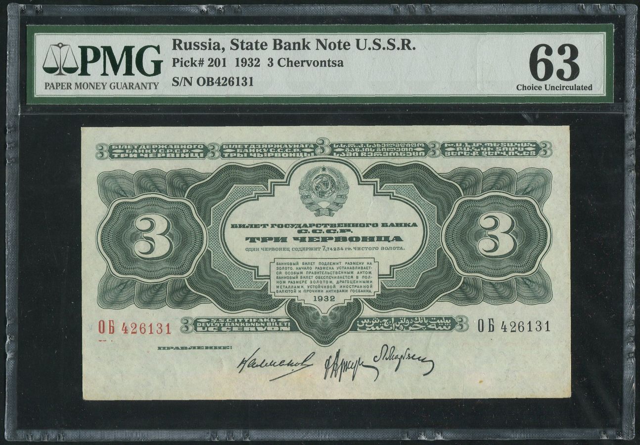 Билет государственного банка СССР 3 червонца образца 1932 года, ОБ 426131.