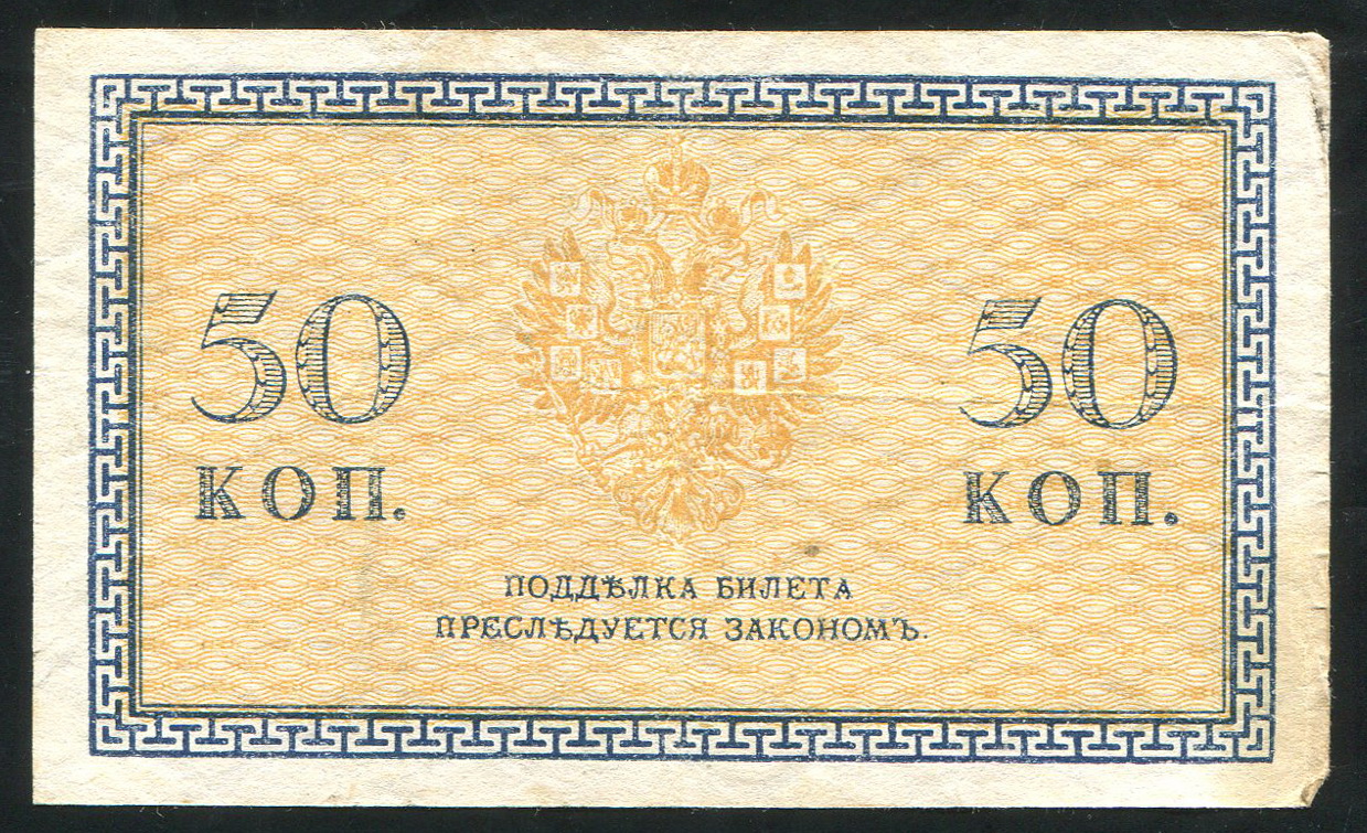 Северная Россия. Билет 50 копеек образца 1918 года. 1-й выпуск (орел с коронами)