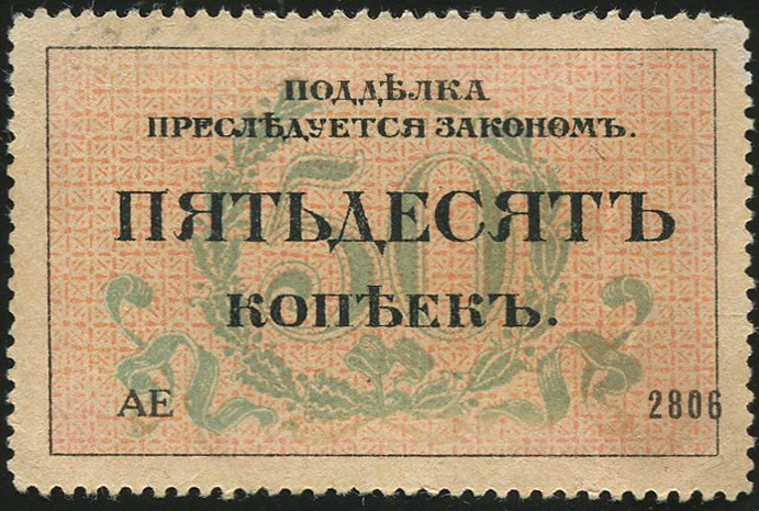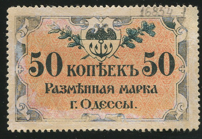 Разменная марка г. Одессы 50 копеек 1917 года (без указания даты), АЕ 2806.