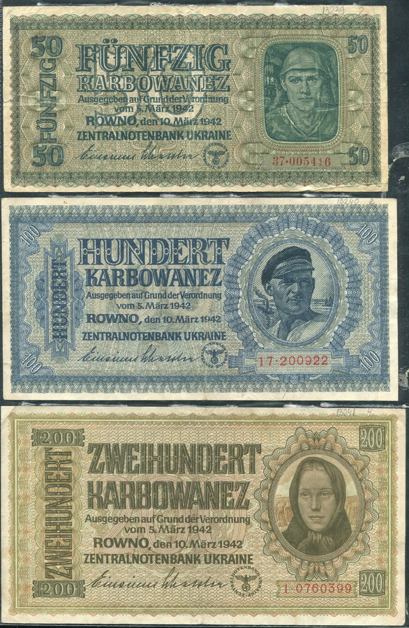 Набор из 7-ми бон карбованцы 1942 (Украина)