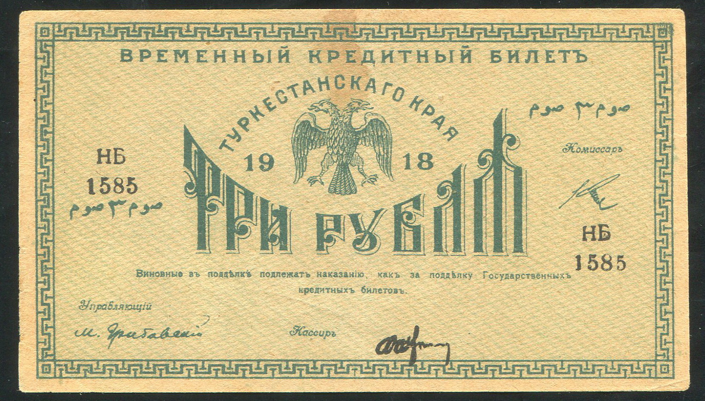 3 рубля 1918 (Туркестанский край)