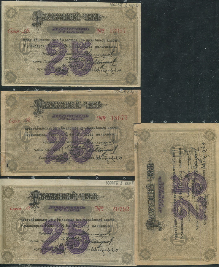 Набор из 4-х 25 рублей 1919 (Красноярское общество взаимного кредита)