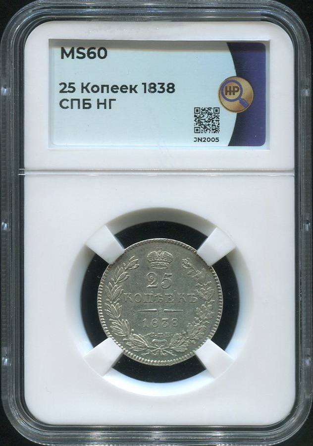 25 копеек 1838 (в слабе) СПБ-НГ