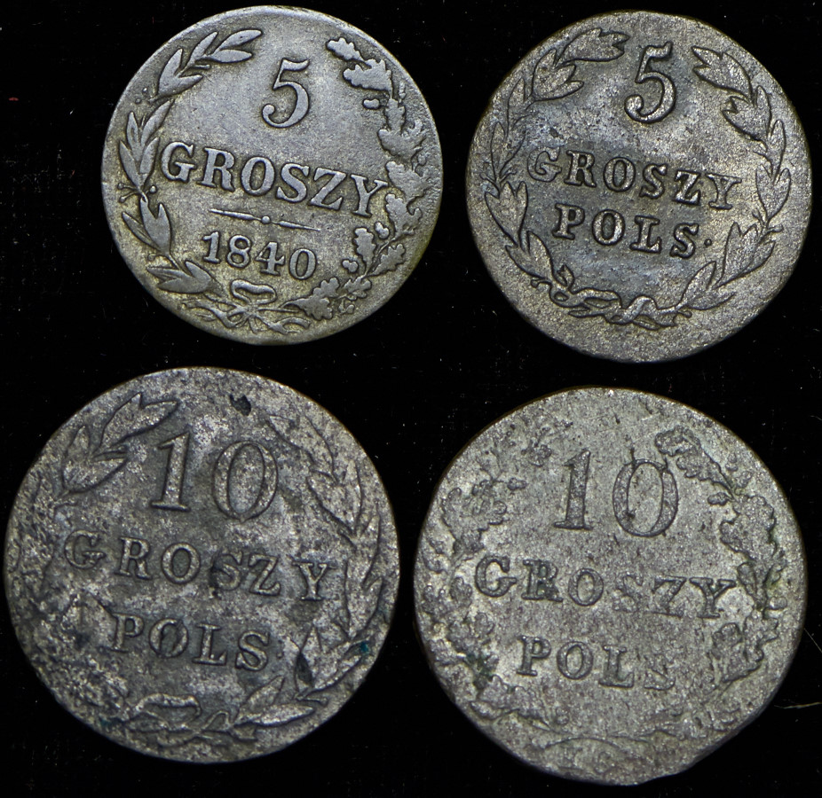 10 грошей 1827, 1831 Польское восстание; 5 грошей 1825, 1840