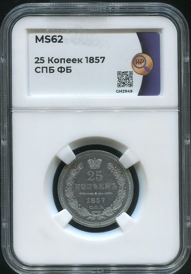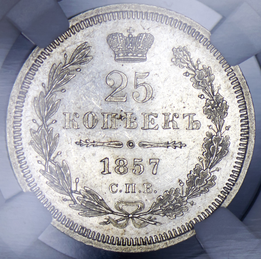 25 копеек 1857 (в слабе) СПБ-ФБ