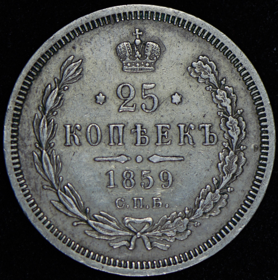 25 копеек 1859 СПБ-ФБ