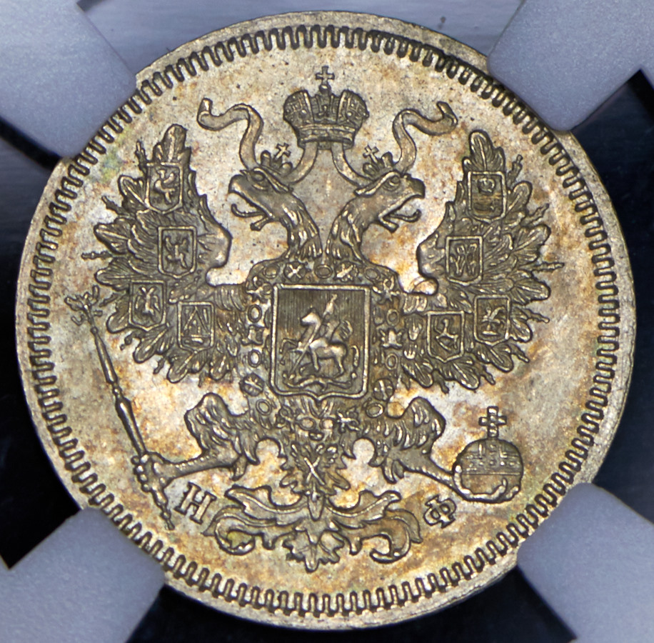 20 копеек 1865 (в слабе) СПБ-НФ