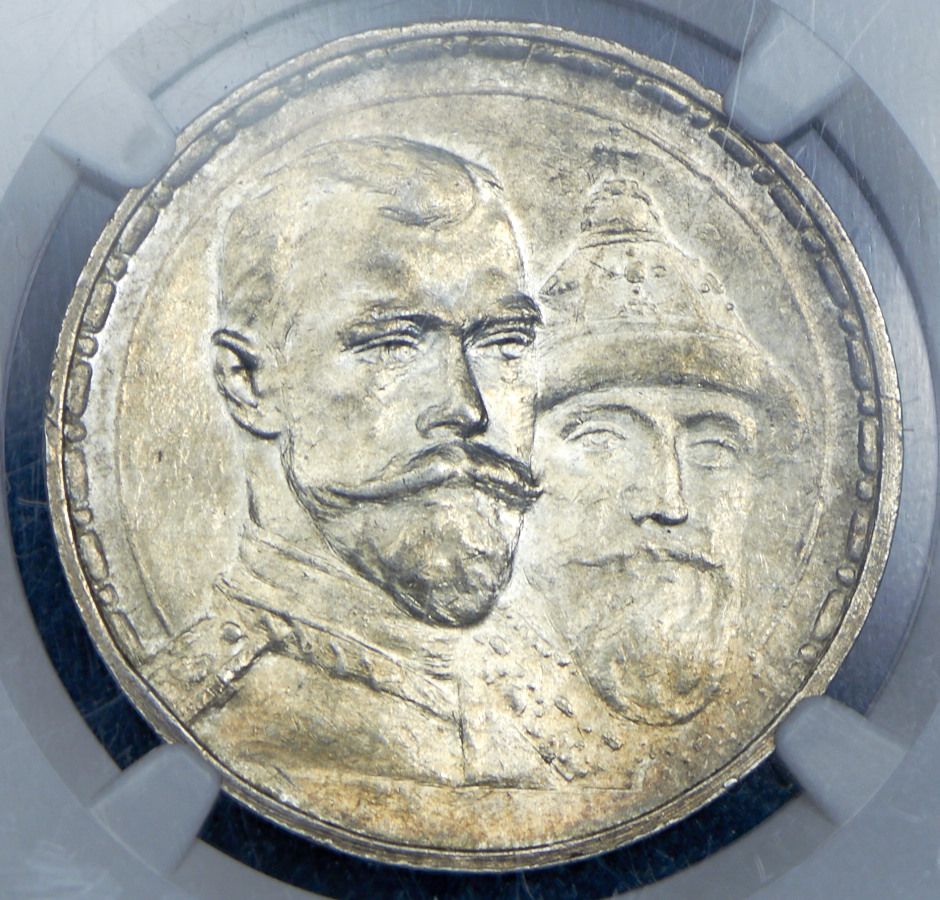 Чеканен в память 300-летия царствования Дома Романовых.