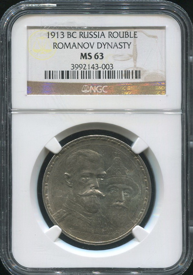 Рубль 1913 "300-летие царствования Дома Романовых" (в слабе) (ВС)