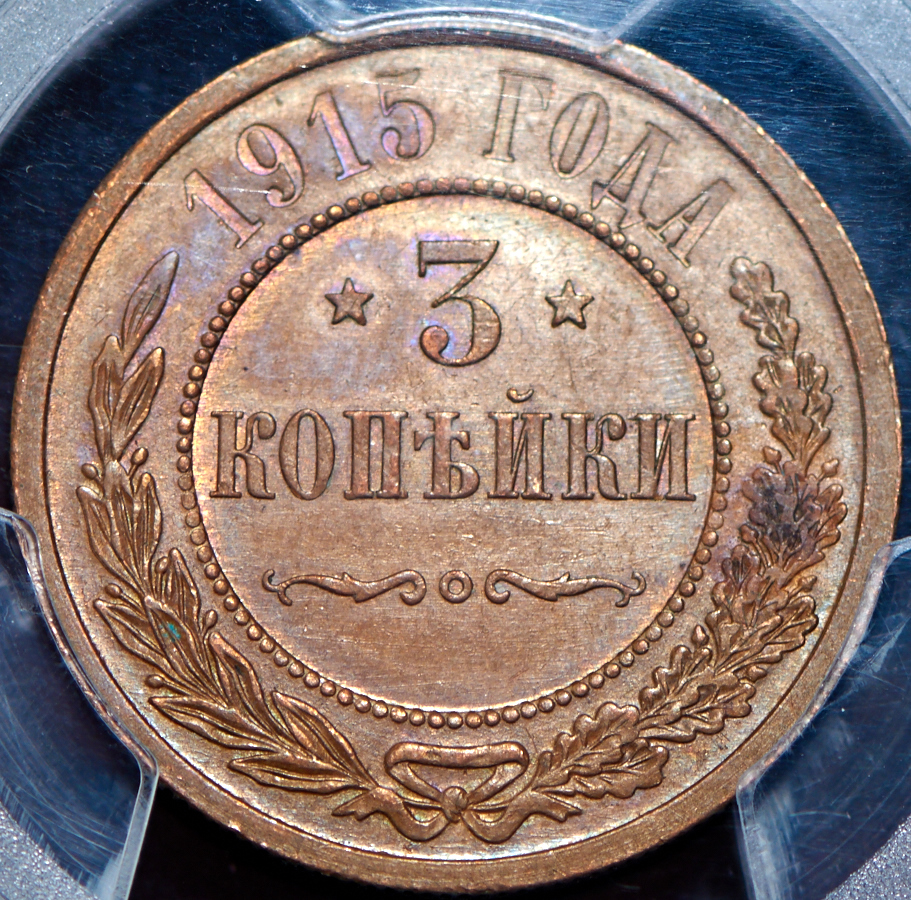 "После начала первой мировой войны, в которой противником России была германия, русской столице в 1915 г. вместо "немецкого" названия - Санкт-Петербург - было присвоено русское - Петроград. В связи с этим со всех русских монет (разменных серебряных и медных) было снято обозначение Петербургского монетного двора - "СПБ" (т.е. "Санкт-Петербург"), однако другого обозначения до 1917 г. так и не было установлено."