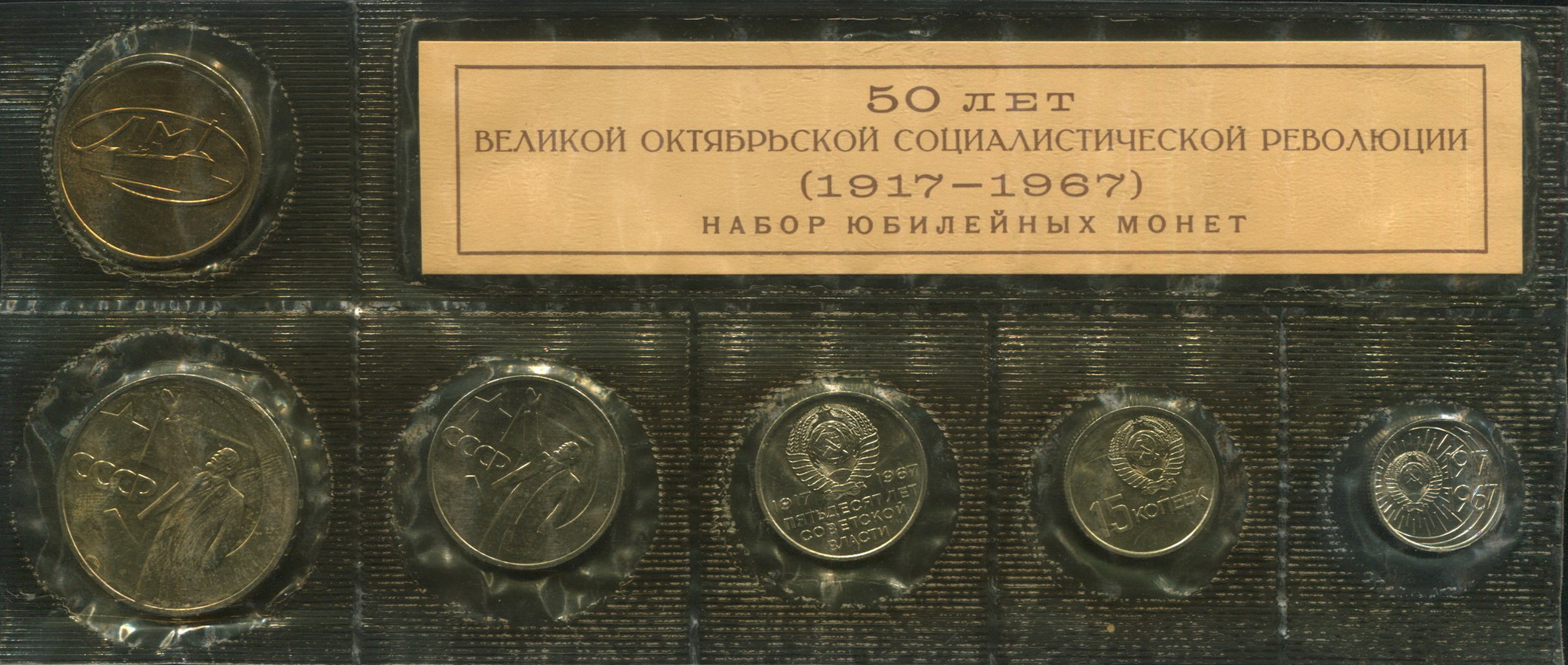Юбилейный набор памятных монет "50 лет Революции" 1967 (в запайке)