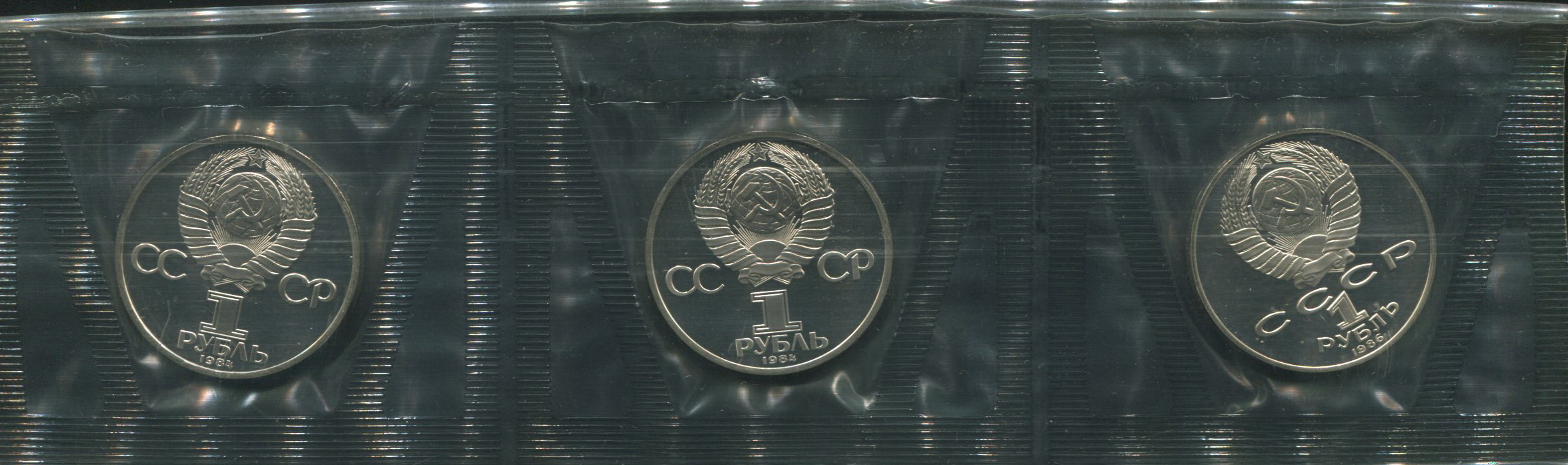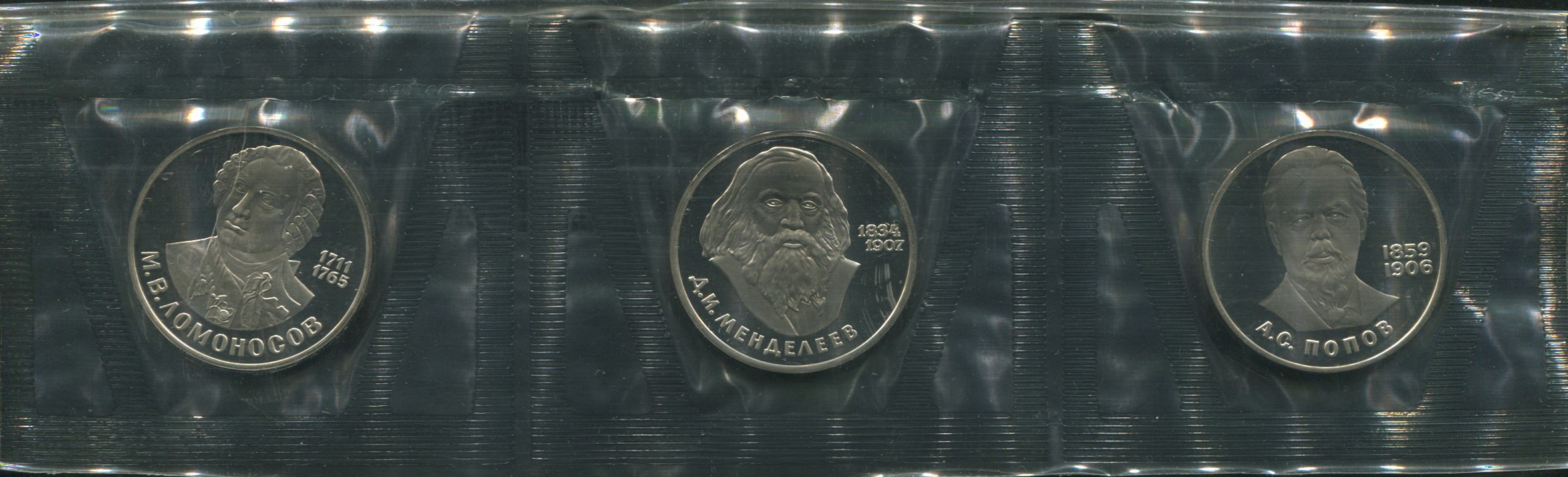 Набор из 3-х юбилейных монет Рубль "Ломоносов", "Менделеев", "Попов" (в запайке)