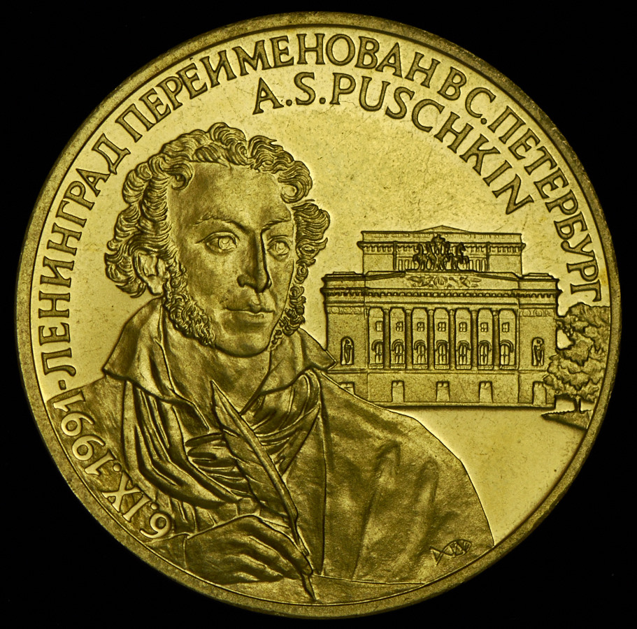 Медаль посвящена переименованию Ленинграда в Санкт-Петербург в 1991 году. Чеканена на монетном дворе в Нидерландах.