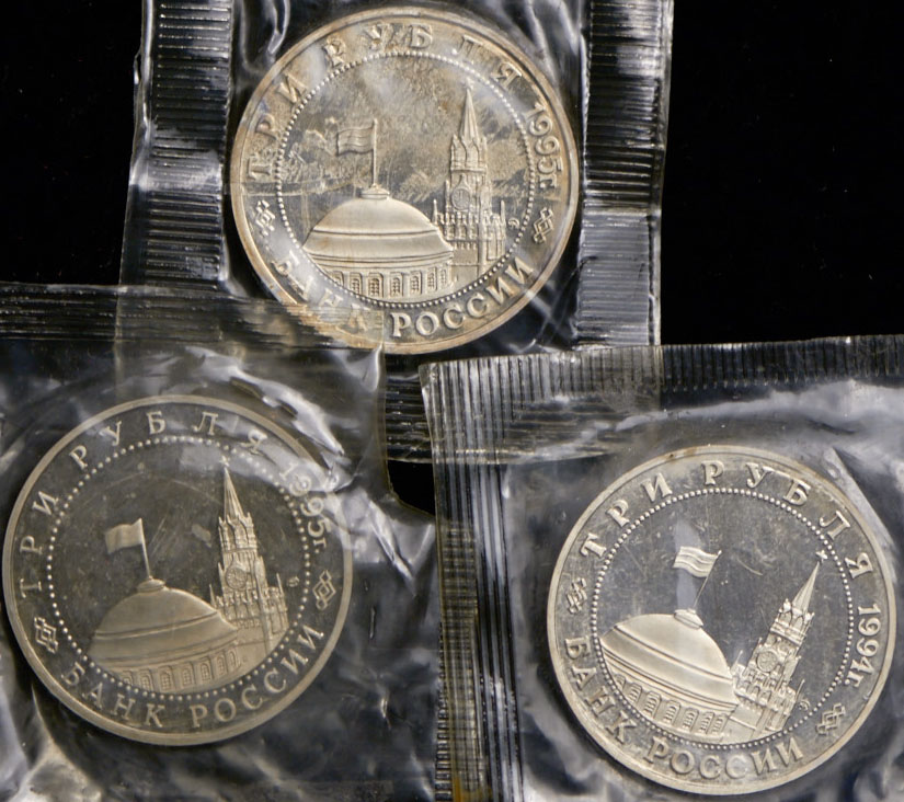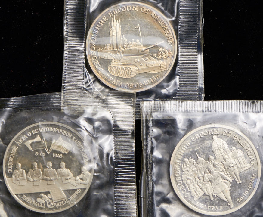 - 3 рубля 1995 "Капитуляция фашистской Германии" (запайка повреждена).
