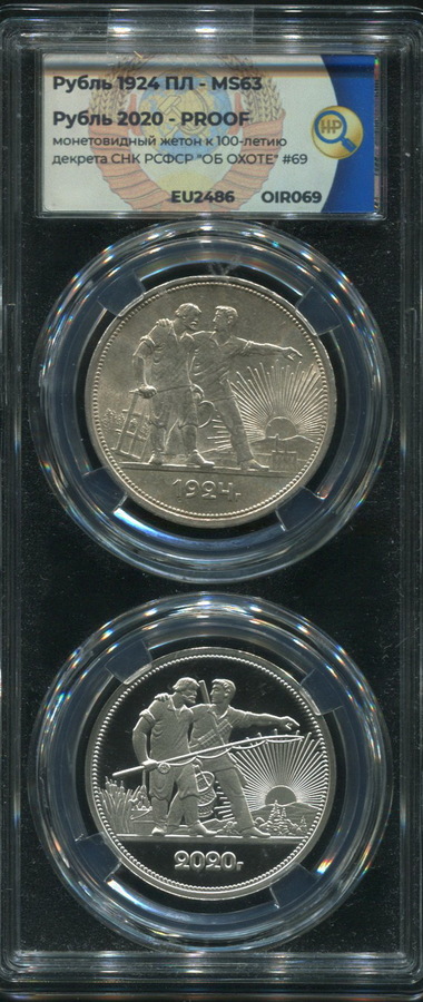 Рубль 1924 (ПЛ) - MS 63. Монетовидный жетон "Рубль 2020 "100-летие декрета "Об охоте"" - PROOF.