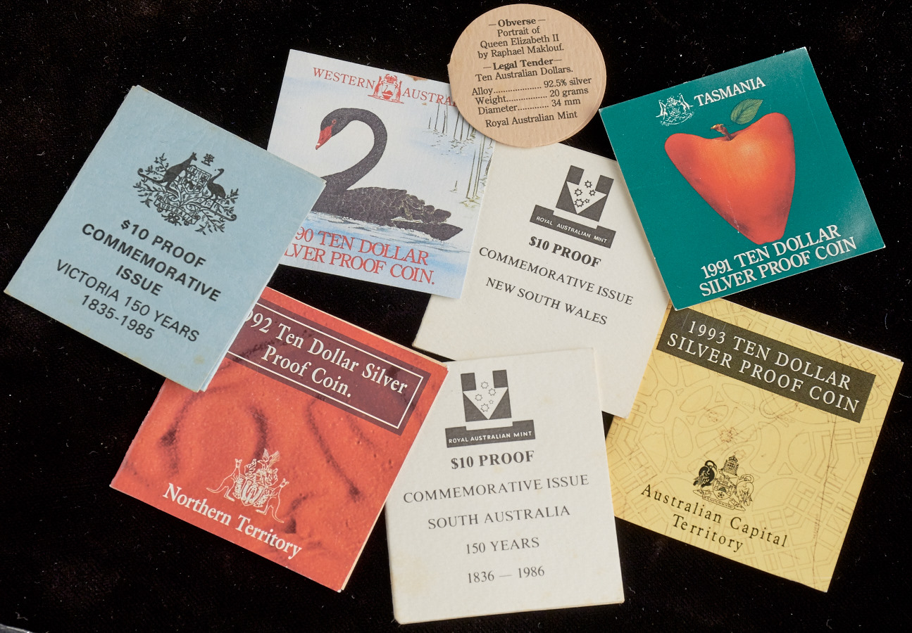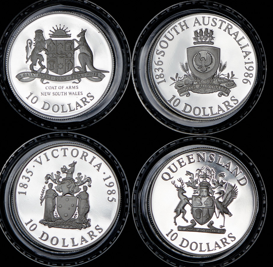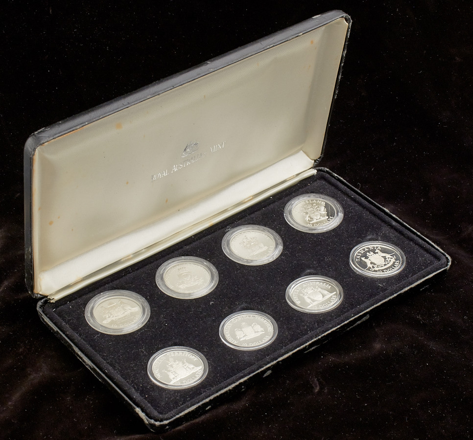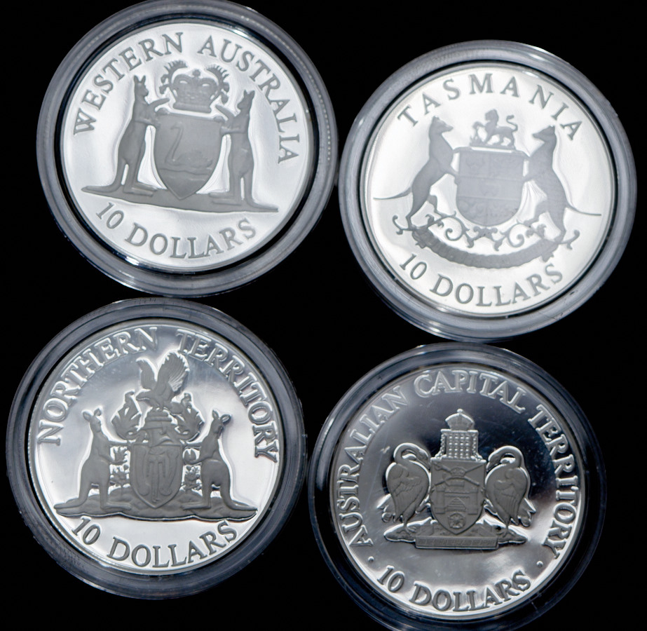 Набор из 8-ми сер. монет "Австралийские штаты" 1985-1993 (Австралия) (в п/у)