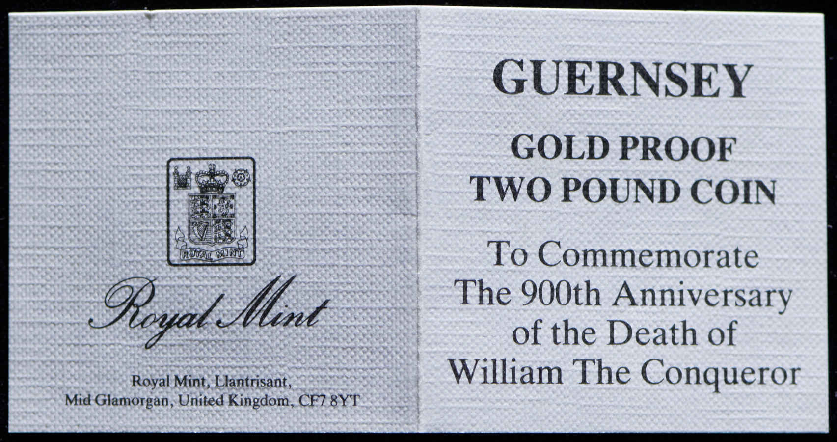 Отчеканена в память 900-летия со дня смерти Вильгельма Завоевателя.