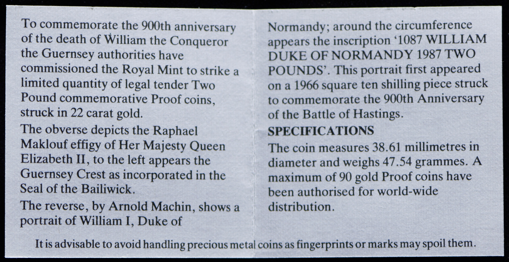 2 фунта 1987 "Вильгельм Завоеватель" (Гернси) (в п/у)