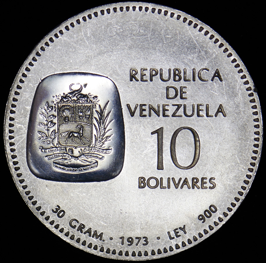 10 боливаро 1973 "100 лет изображению на монетах бюста Симона Боливара" (Венесуэла)