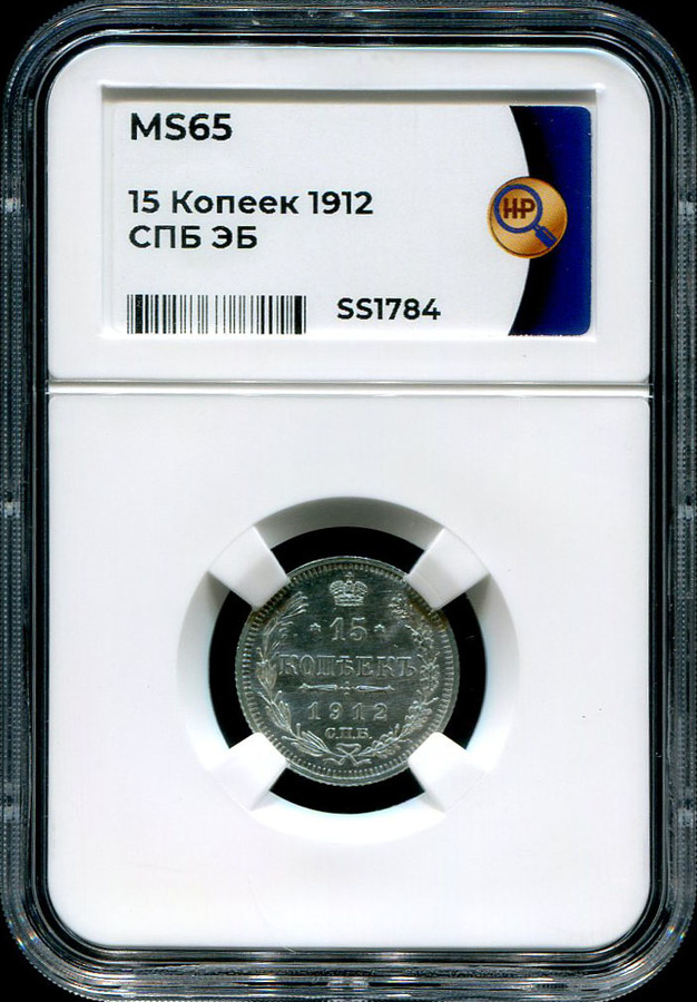 15 копеек 1912 (в слабе) СПБ-ЭБ