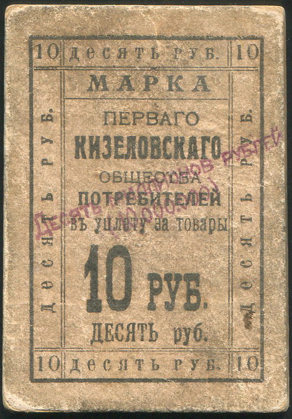 Марка 10 рублей (Первое Кизеловское Общество Потребителей)