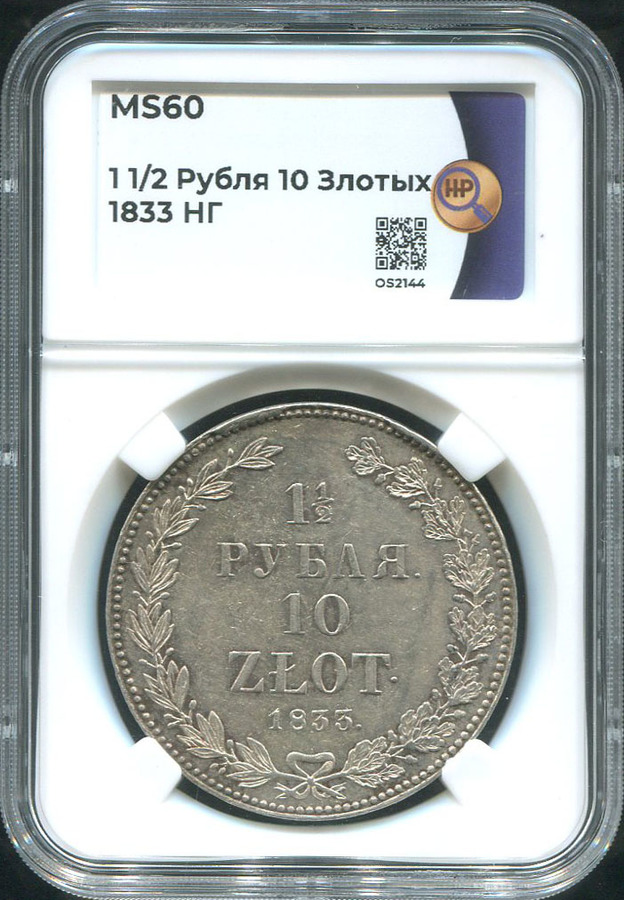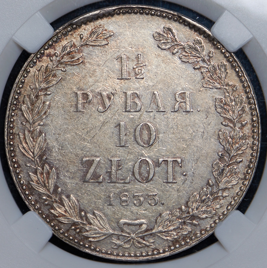 1,5 рубля - 10 злотых 1833 (в слабе) НГ