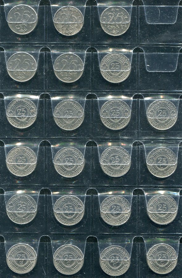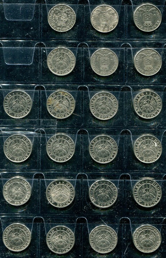 Набор из 22-х монет Антильские Нидерландские острова. 25 центов (1970, 1971, 1975, 1976, 1977, 1989, 1990, 1991, 1993 1994, 1996, 1997, 1998, 1999, 2003, 2004, 2005, 2007, 2008, 2009, 2010, 2012)