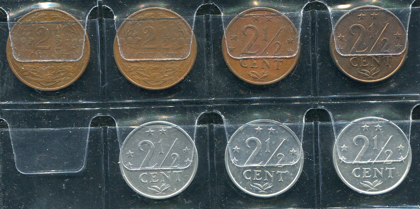 Набор из 7-ми монет Антильские Нидерландские острова. 2 1/2 центов (1959, 1965, 1971, 1976, 1979, 1980, 1984)