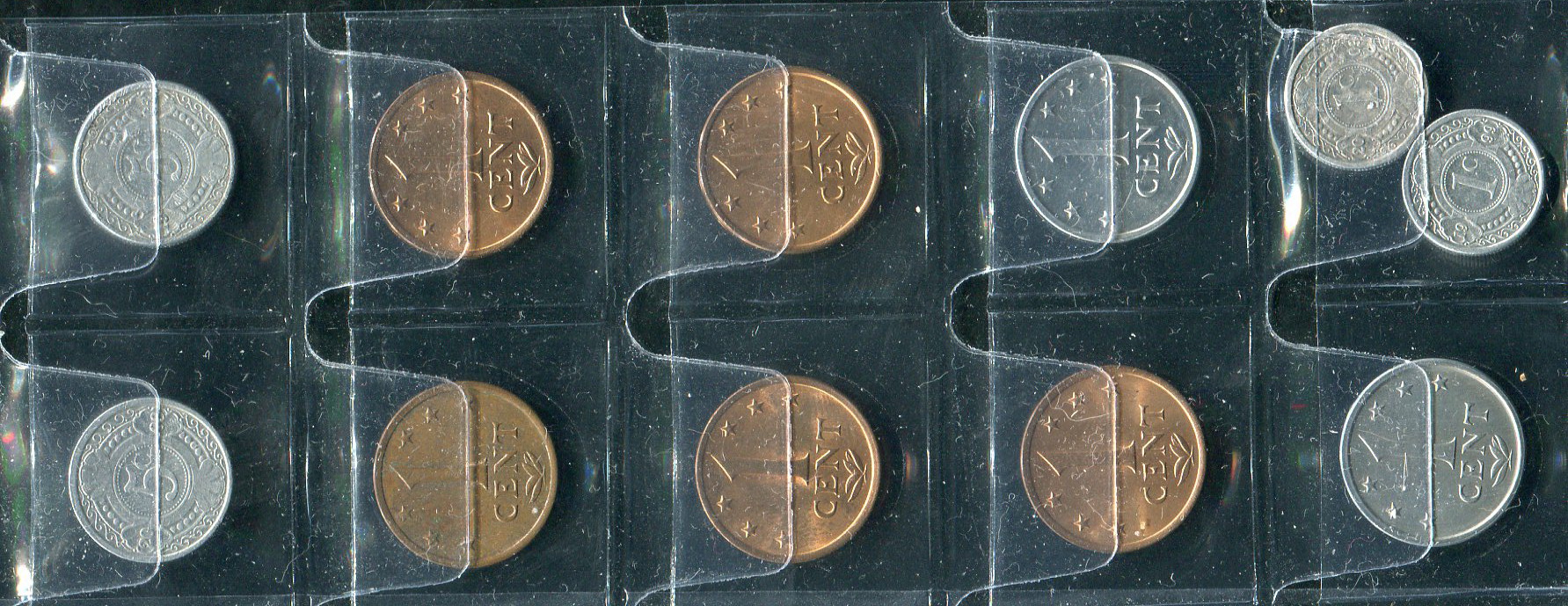 Набор из 11-ти монет Антильские Нидерландские острова. 1 цент (1970, 1975, 1976, 1977, 1978, 1979, 1985, 1999, 2003), 5 центов (1998, 2003)