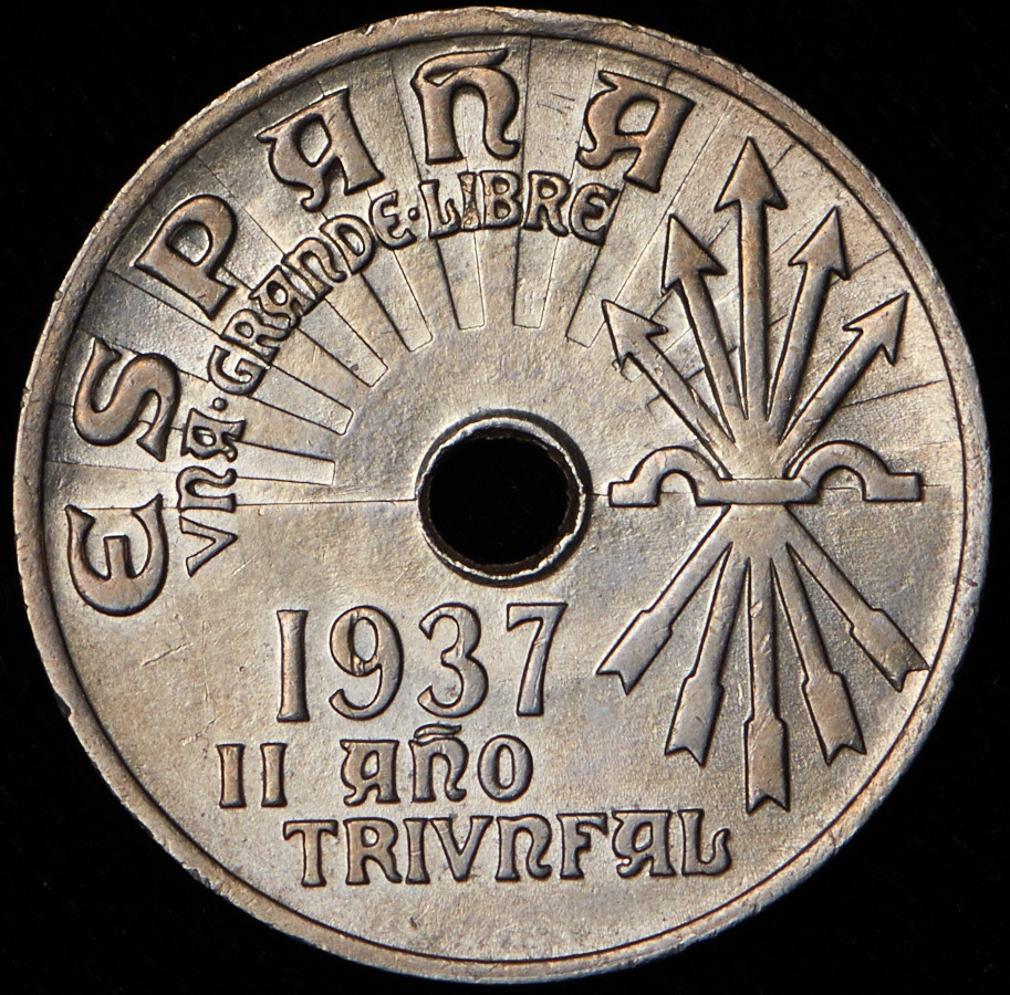 Первый выпуск монеты правительства Франко (Гражданская Война 1936-1939 гг.).