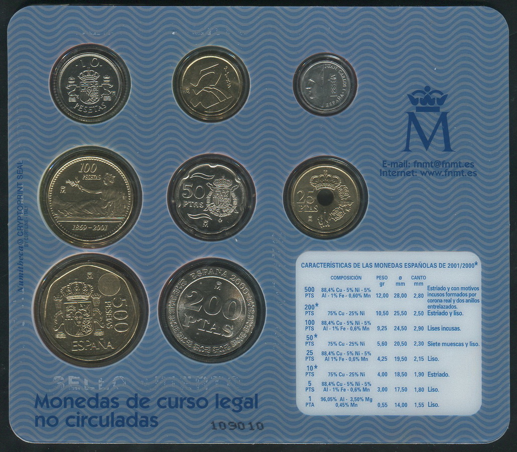 Набор из 8-ми монет "Последние песеты" (Испания) (в п/у)