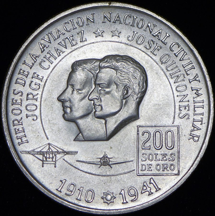 200 солей 1975 "Авиаторы - Хорхе Чавес и Хосе Киньонес Гонсалес" (Перу)