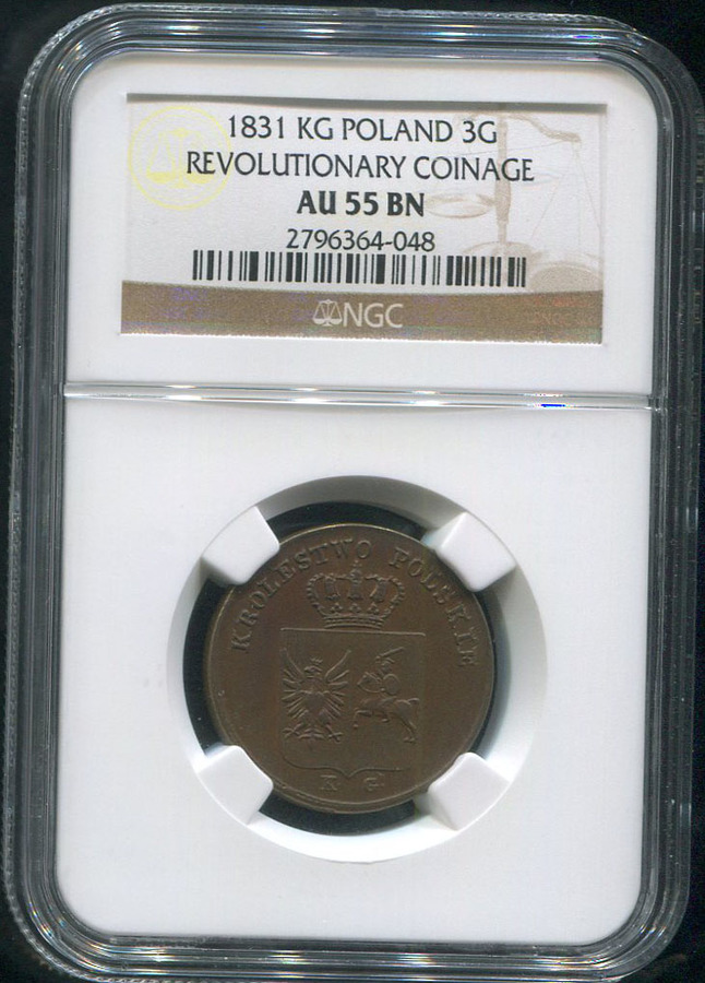 В ноябре 1830 года в Польше, находившейся тогда под управлением России, вспыхнуло национально-освободительное восстание против власти Российской империи. Последней понадобился почти год, чтобы его подавить. В течение большей части этого времени на Варшавском монетном дворе вместо монет с российской символикой чеканились новые, с польским гербом. Их выпуск продолжался с февраля по сентябрь 1831 года. После усмирения восстания "мятежные" монеты оставались в обращении в Царстве Польском до 1 июля 1838 года.