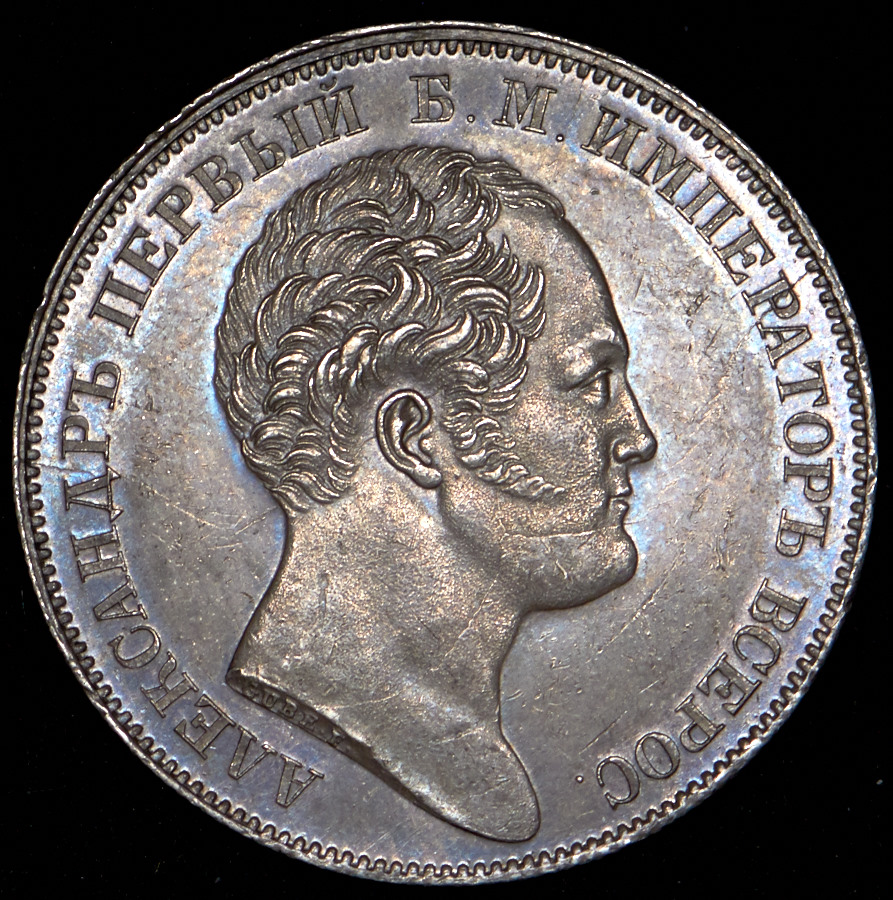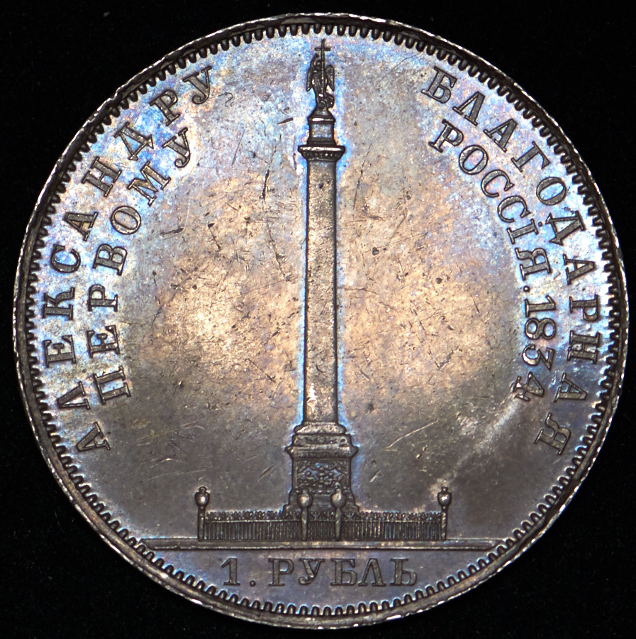 Чеканена в память открытия Александровской колонны в Санкт-Петербурге.