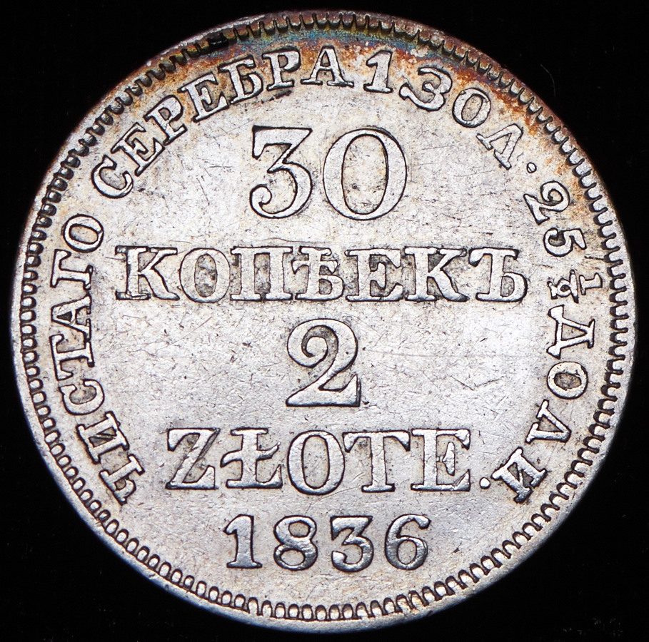 30 копеек - 2 злотых 1836 MW