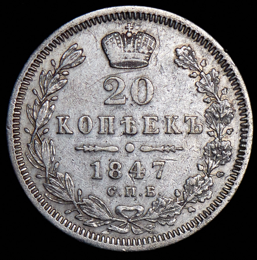 20 копеек 1847 СПБ-ПА