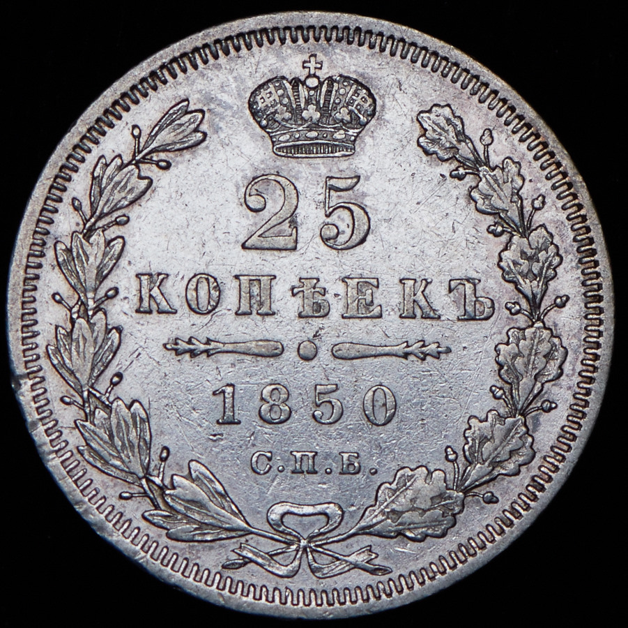 25 копеек 1850 СПБ-ПА
